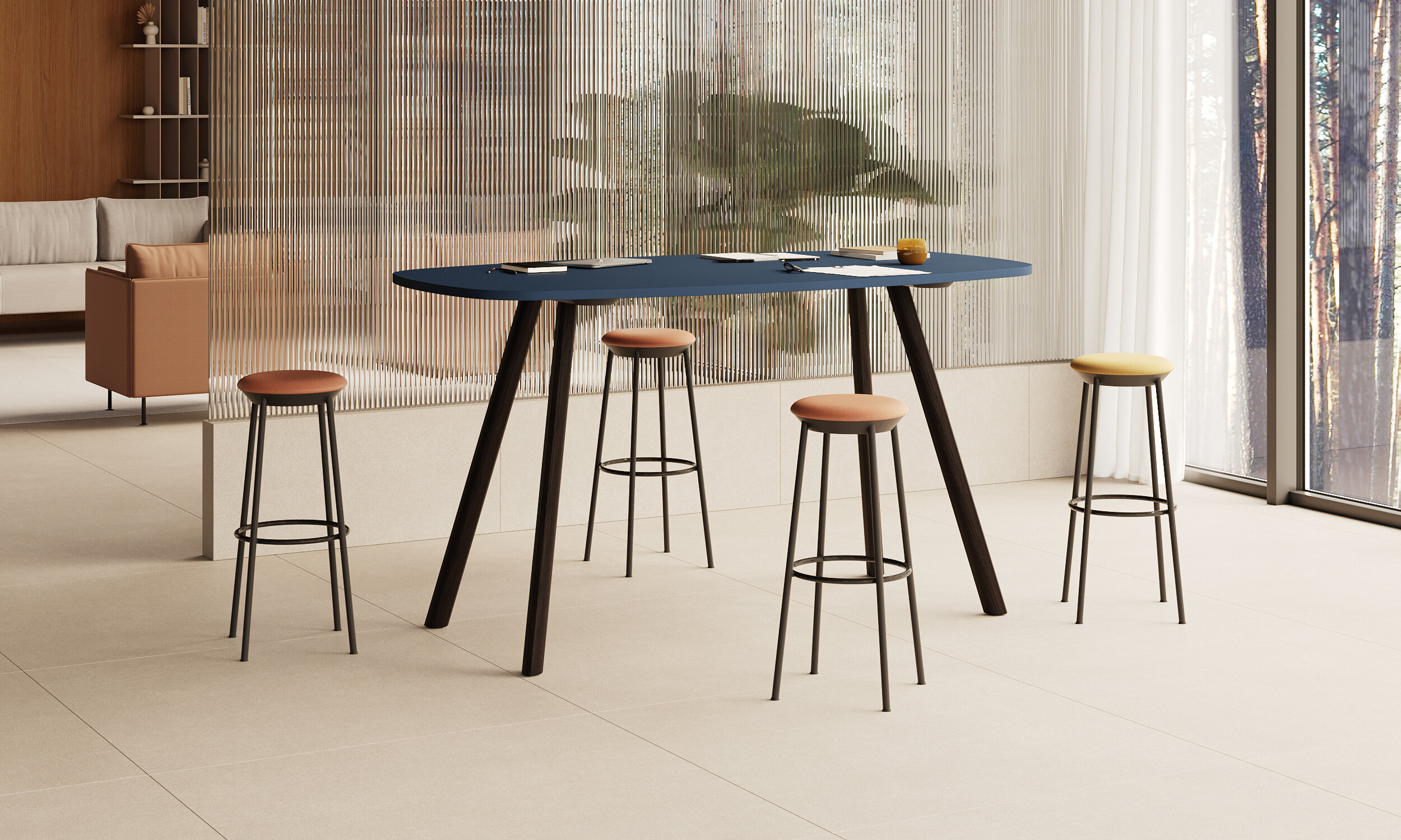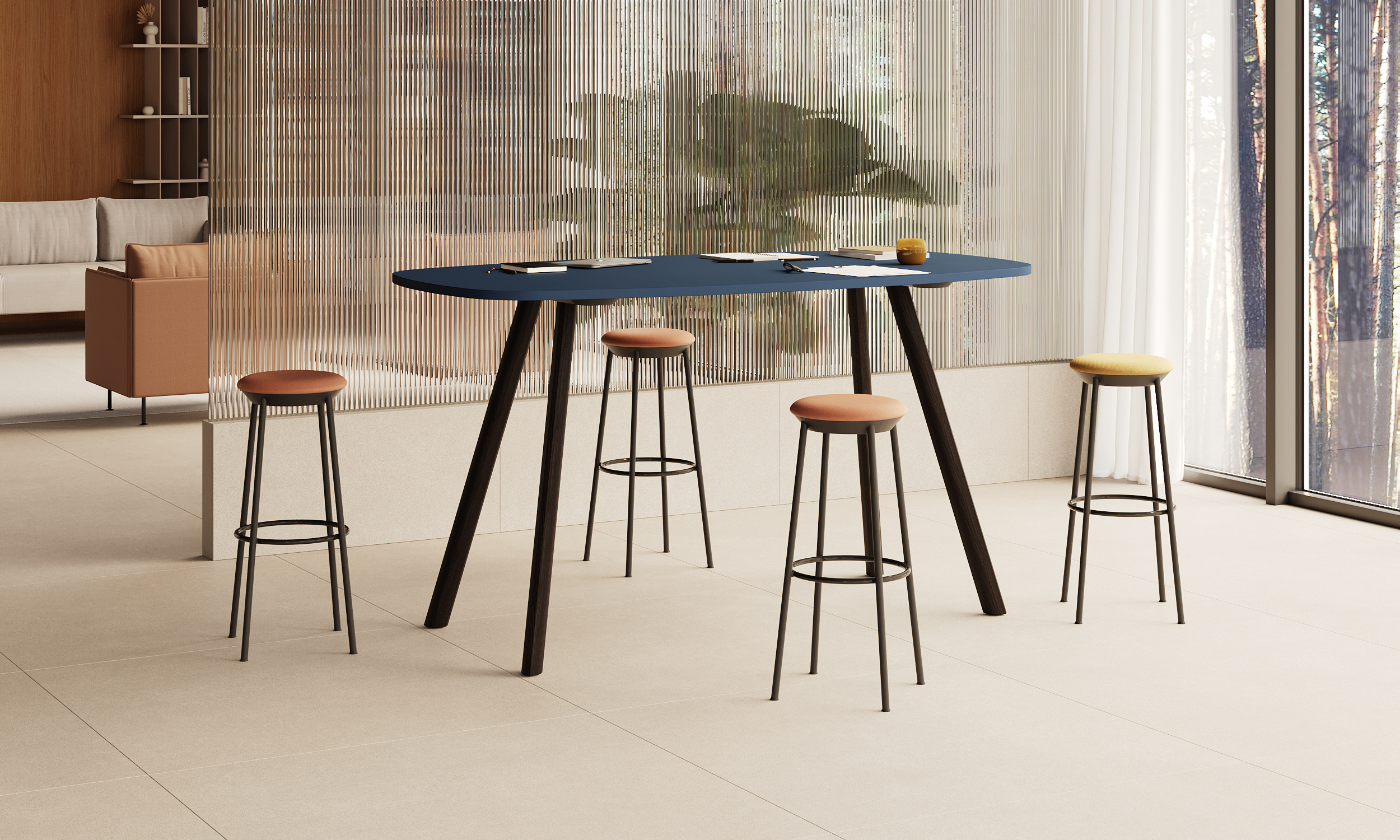 Ümarate nurkadega kõrge koosolekulaud sulandub hõlpsalt vaba õhkkonnaga interjööri, sobides hästi nii informaalseteks kogunemisteks, asjalikuks tiimitööks kui ka einelate sisustamiseks.