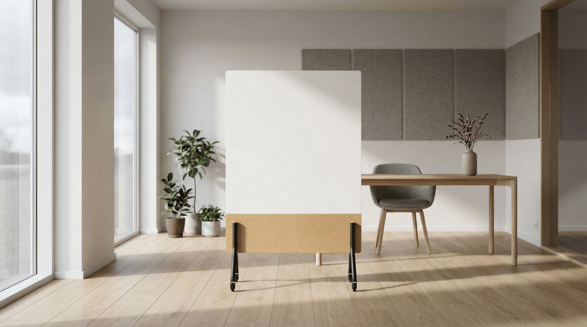 Ratastel esitlustahvel Note on mitmeotstarbeline töövahend, mis toetab koosolekuid, arutelusid ja ajutisi tööalasid. Tänu mobiilsusele saab seda hõlpsasti liigutada erinevate tsoonide vahel ning kasutada vastavalt vajadusele nii esitlusteks kui ka ideede visualiseerimiseks. Lisaks aitab Note parandada ruumi akustikat, muutes selle väärtuslikuks rendilahenduseks dünaamilistes kontorites ja projektipõhistes keskkondades.
