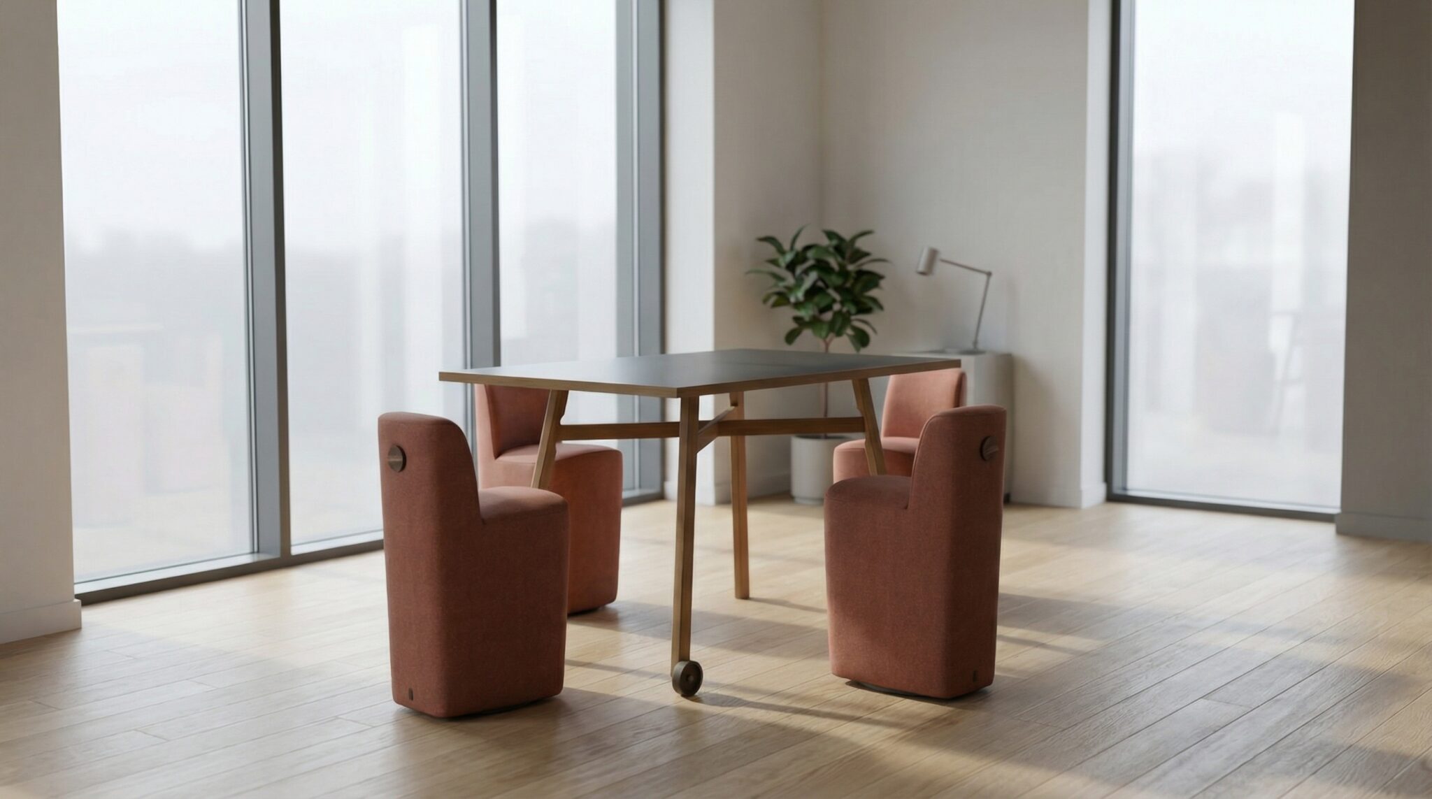 Komplekt koosneb kõrgest koosolekulauast Rolf ja neljast kõrgendatud pöördalusel istmest Hubert, mis pakuvad mugavat tuge ka pikemaks seismiseks või poolistuvaks tööks.