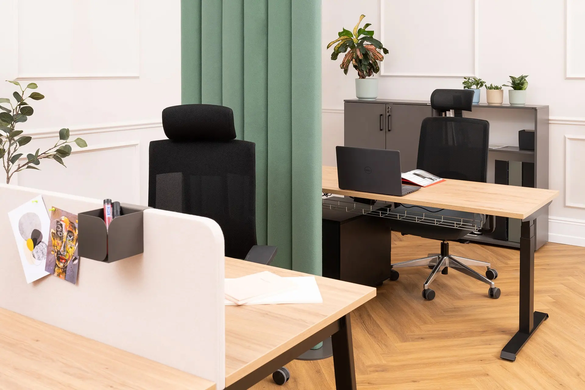 Polsterdatud või puitlaastplaadist vaheseinad, pistikupesade lahendused, kaablirennid