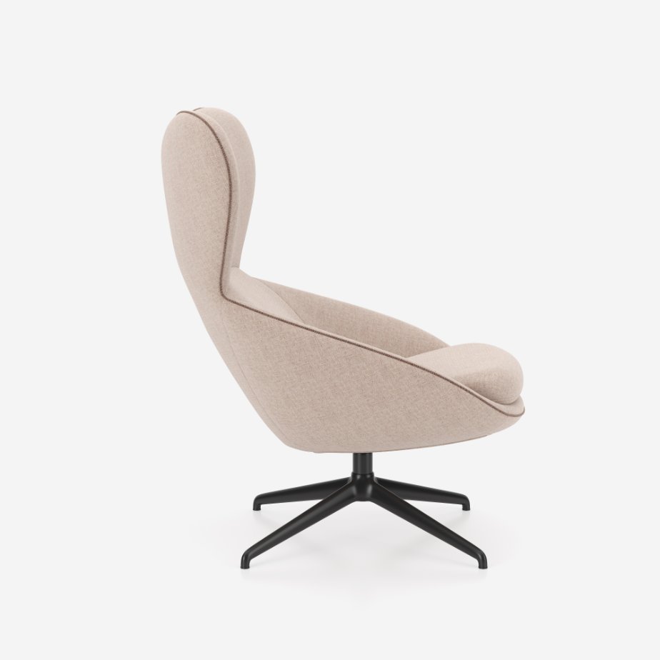 Scadio lounge-tugitool ühendab elegantsi ja funktsionaalsuse. Kõrge seljatugi vähendab tõhusalt visuaalseid ja akustilisi segajaid, luues hubase varjupaiga. Mugav istumiskuju toetab selga ja pead, võimaldades keskenduda või lihtsalt lõõgastuda. Dekoratiivne tepitud äär lisab toolile isikupära ning kaks erinevat jalgade varianti tagavad sobivuse erinevatesse interjööridesse. Soovi korral saab lisada ka jalatoe.