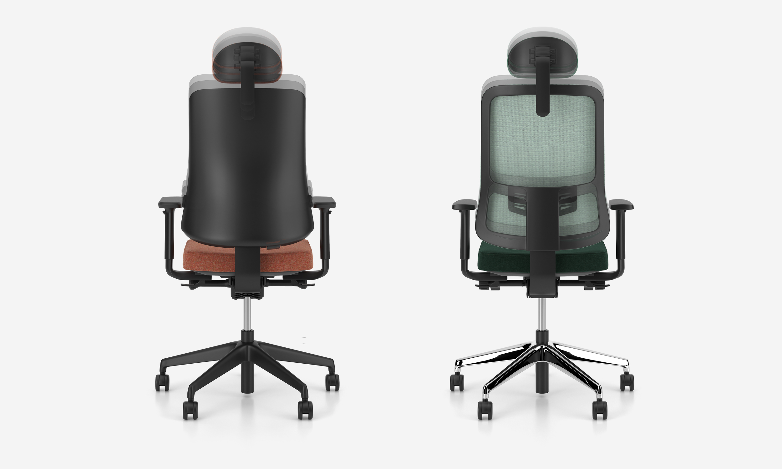 Kaks seljatoe versiooni: hingav võrgust või polsterdatud kattega seljatugi;